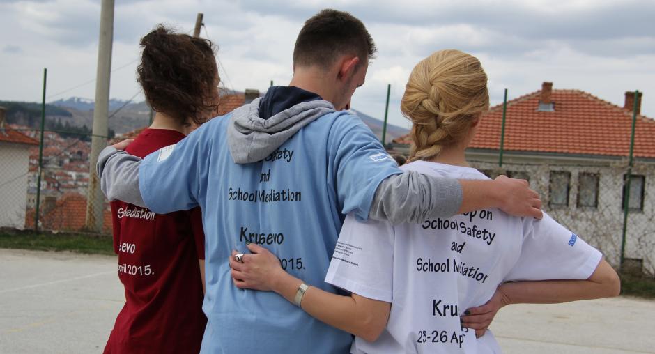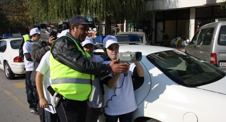 Children accompany police officers in measuring speed using a radar, as part of an OSCE-supported project called 'Child-Police Officer for a Day', Kumanovo, 2 November 2011. (OSCE/Jure Rejec)