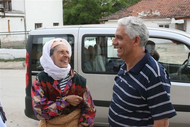 Bedjet Sejdi (right), an ethnic Roma councillor from Skopje's mainly Roma-populated Shuto Orizari municipality, discusses local issues with one of the citizens, 25 April 2007.