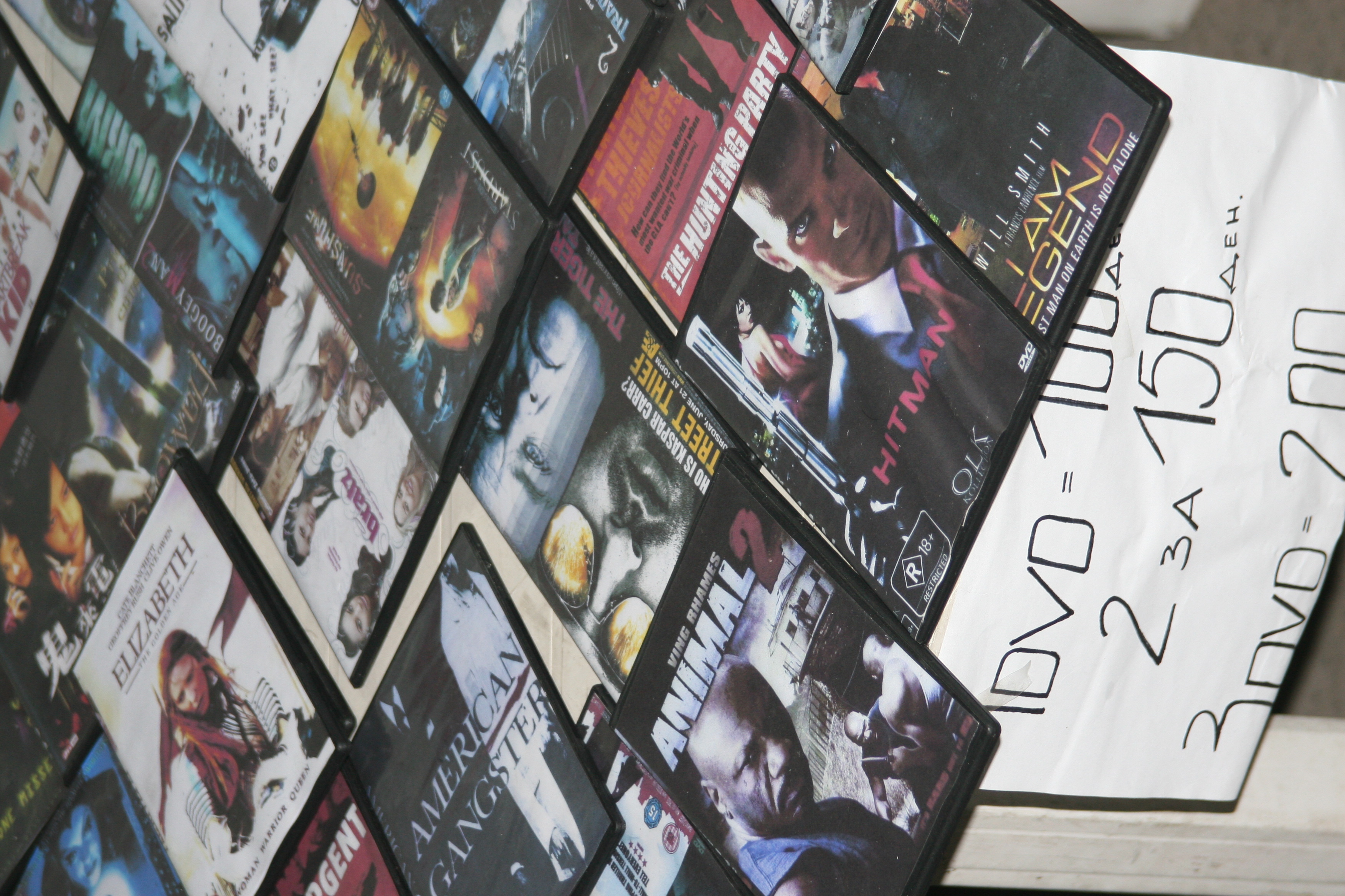 Pirated DVDs on sale in Skopje, 22 January 2008.