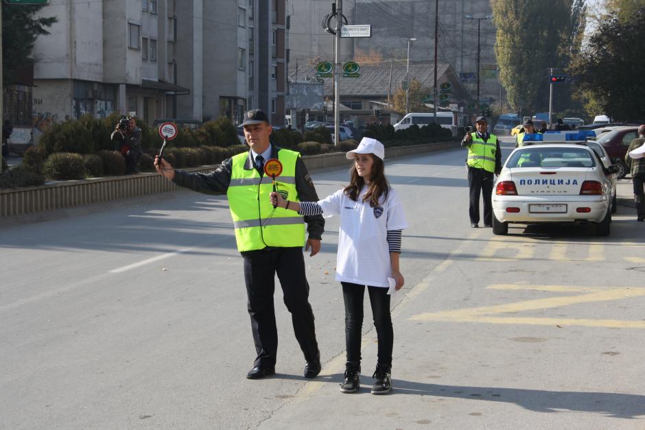 Children accompany police officers in their daily duties, as part of an OSCE-supported project called 'Child-Police Officer for a Day', Kumanovo, 2 November 2011.