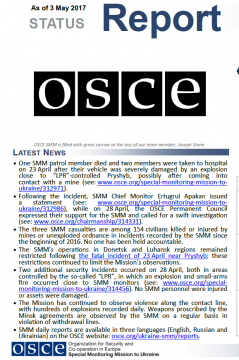 This report presents a general overview of the Special Monitoring Mission to Ukraine (SMM), its main activities and latest news as of 03 May 2017.