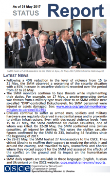 This report presents a general overview of the Special Monitoring Mission to Ukraine (SMM), its main activities and latest news as of 31 May 2017.