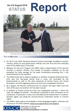 This report presents a general overview of the Special Monitoring Mission to Ukraine (SMM), its main activities and latest news as of 6 August 2018.