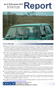 This report presents a general overview of the Special Monitoring Mission to Ukraine (SMM), its main activities and latest news as of 19 November 2018.