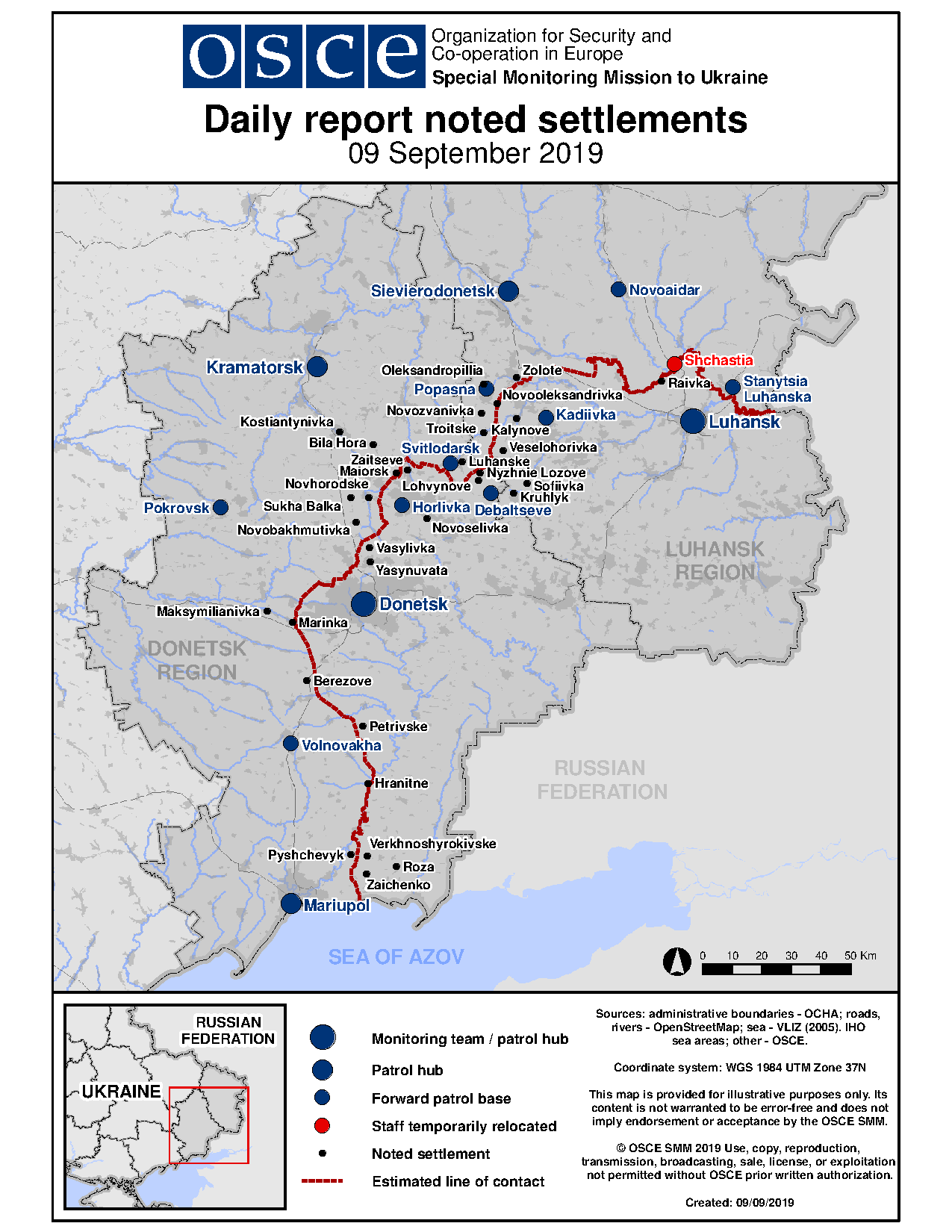 Based on information from the Monitoring Teams as of 19:30 8 September 2019. All times are in Eastern European Summer Time.