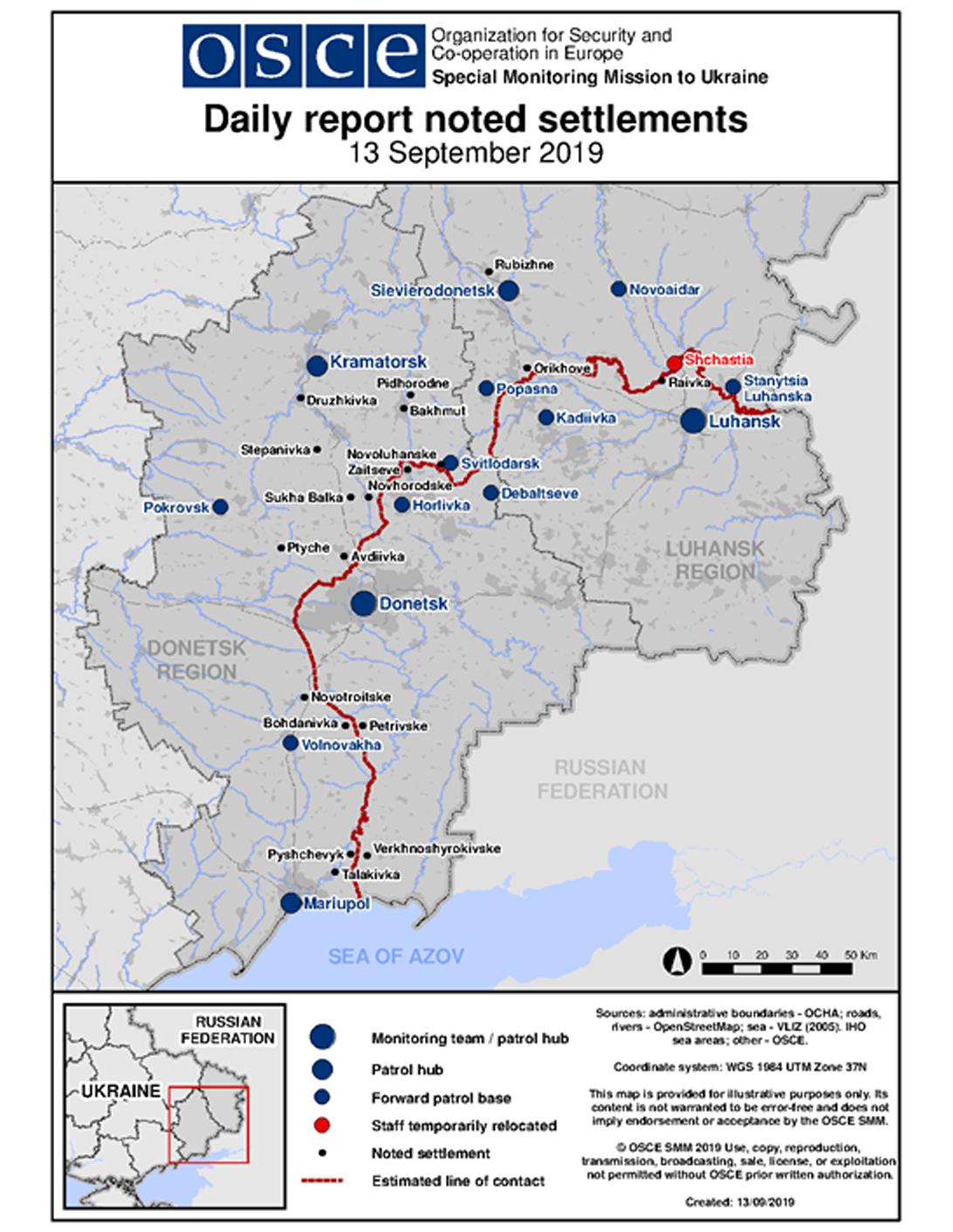 Based on information from the Monitoring Teams as of 19:30 12 September 2019. All times are in Eastern European Summer Time.