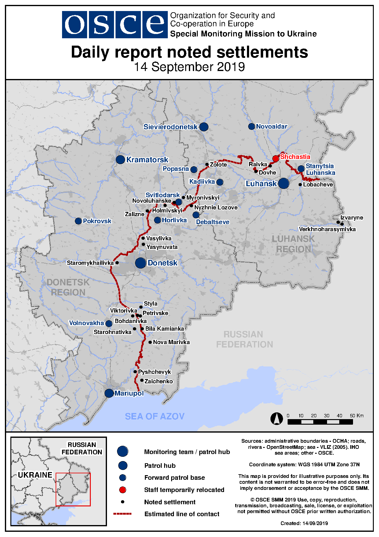 Based on information from the Monitoring Teams as of 19:30 13 September 2019. All times are in Eastern European Summer Time.