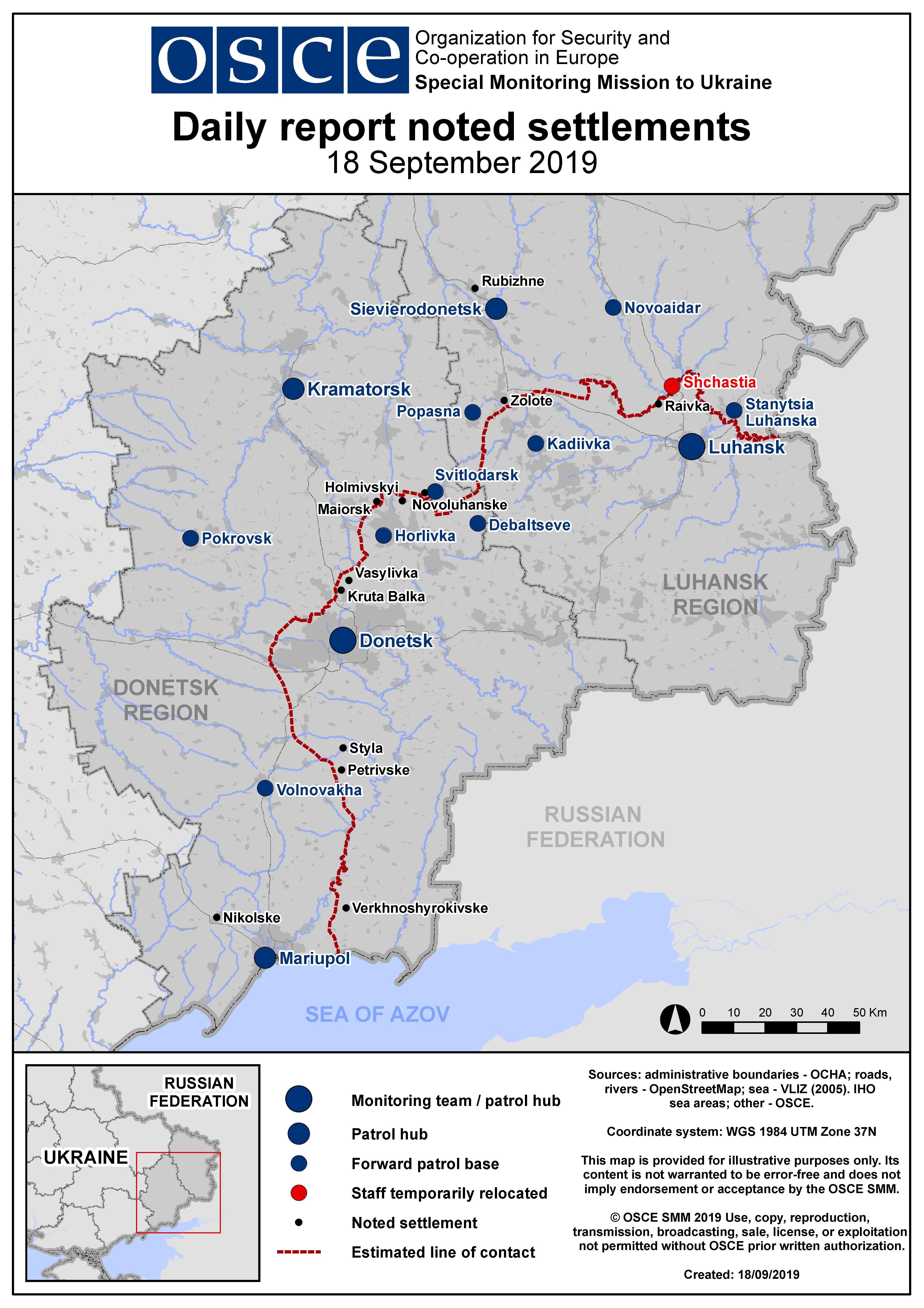 Based on information from the Monitoring Teams as of 19:30 17 September 2019. All times are in Eastern European Summer Time.