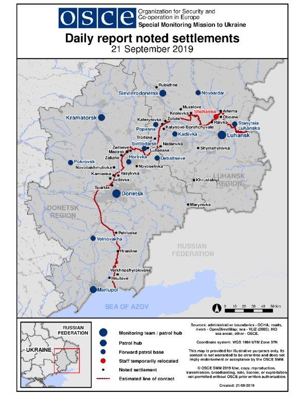 Based on information from the Monitoring Teams as of 19:30 20 September 2019. All times are in Eastern European Summer Time.