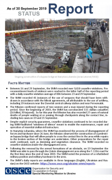 This report presents a general overview of the Special Monitoring Mission to Ukraine (SMM), its main activities and latest news as of 30 September 2019.