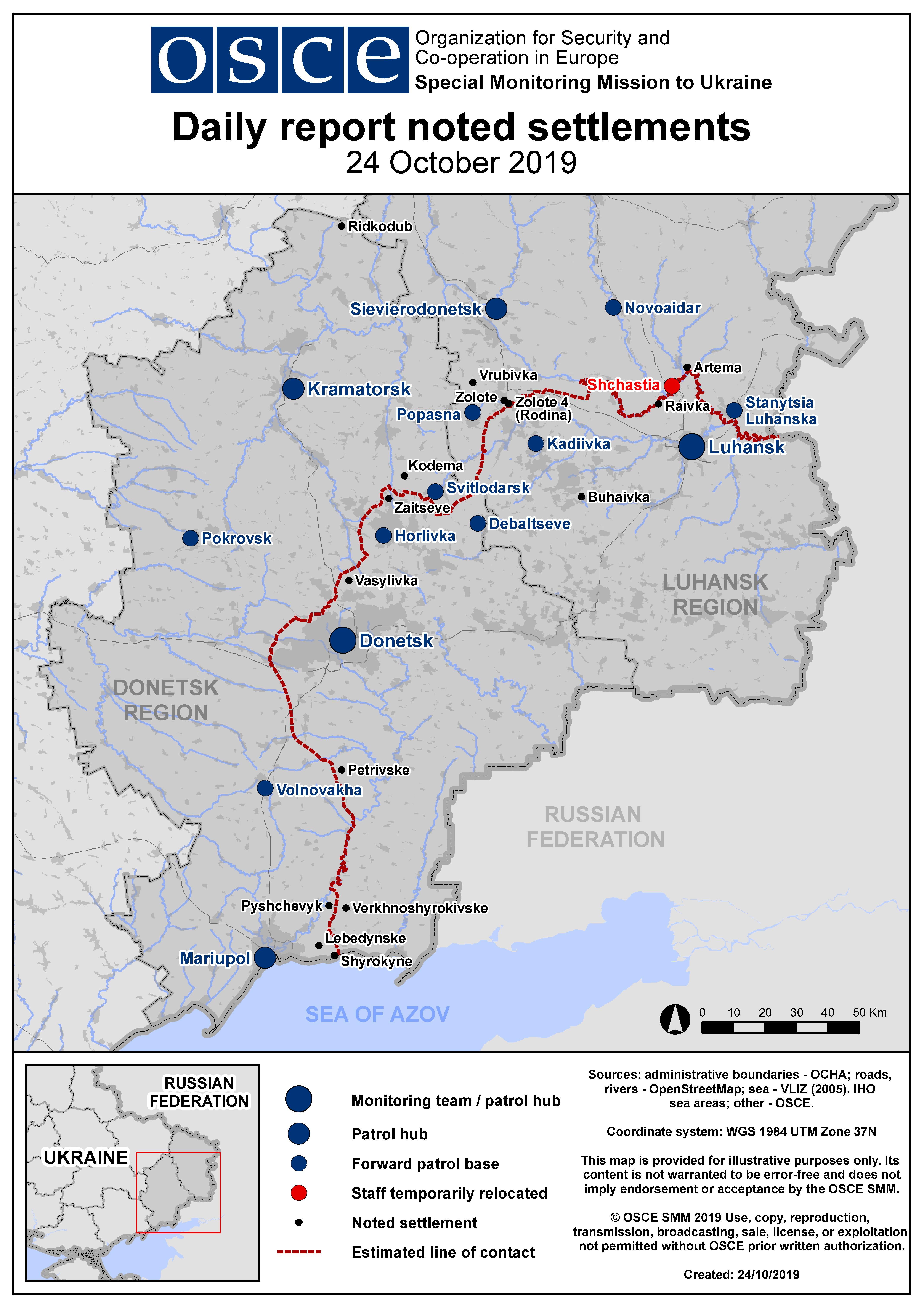 Based on information from the Monitoring Teams as of 19:30 23 October 2019. All times are in Eastern European Summer Time.