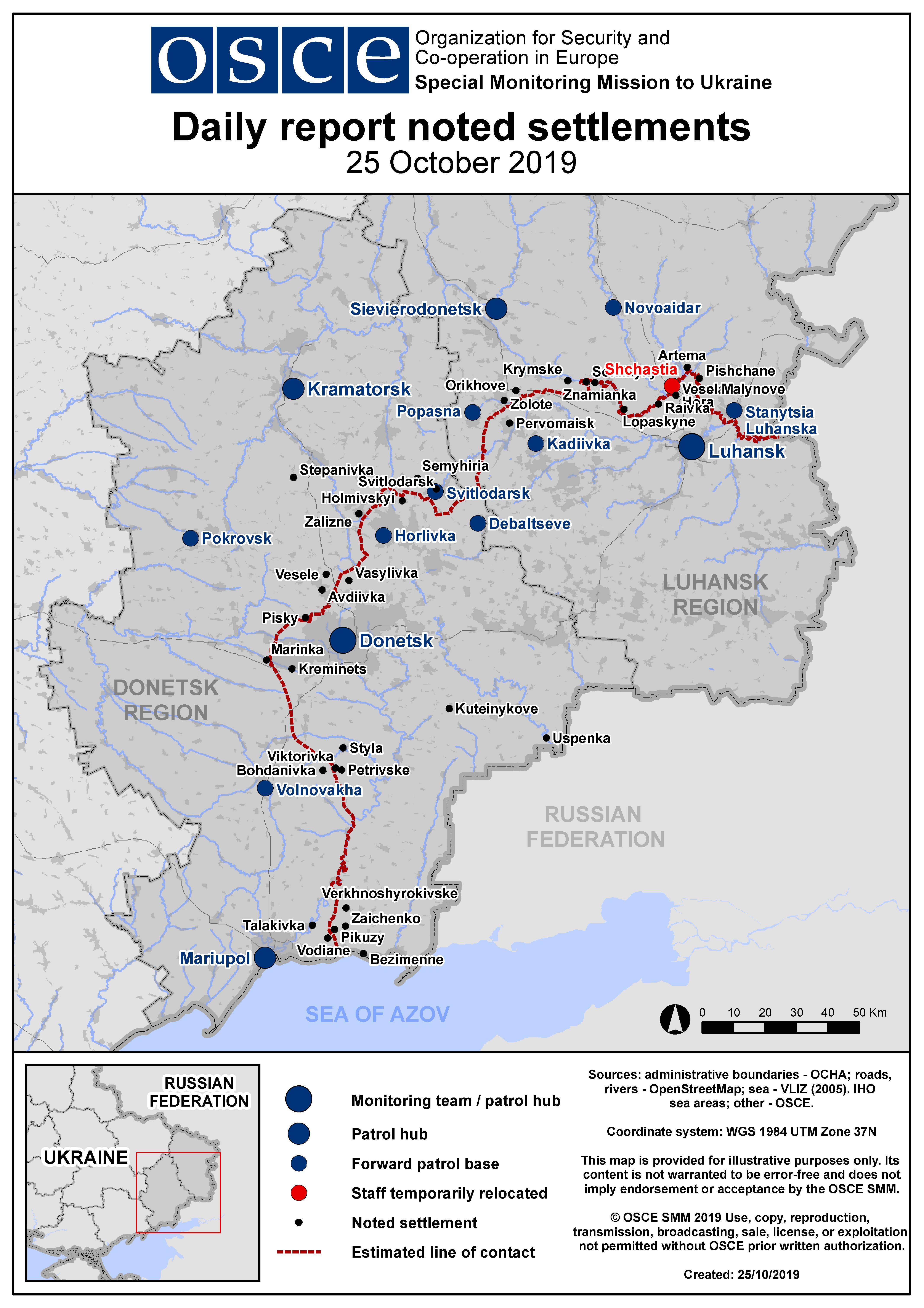 Based on information from the Monitoring Teams as of 19:30 24 October 2019. All times are in Eastern European Summer Time.