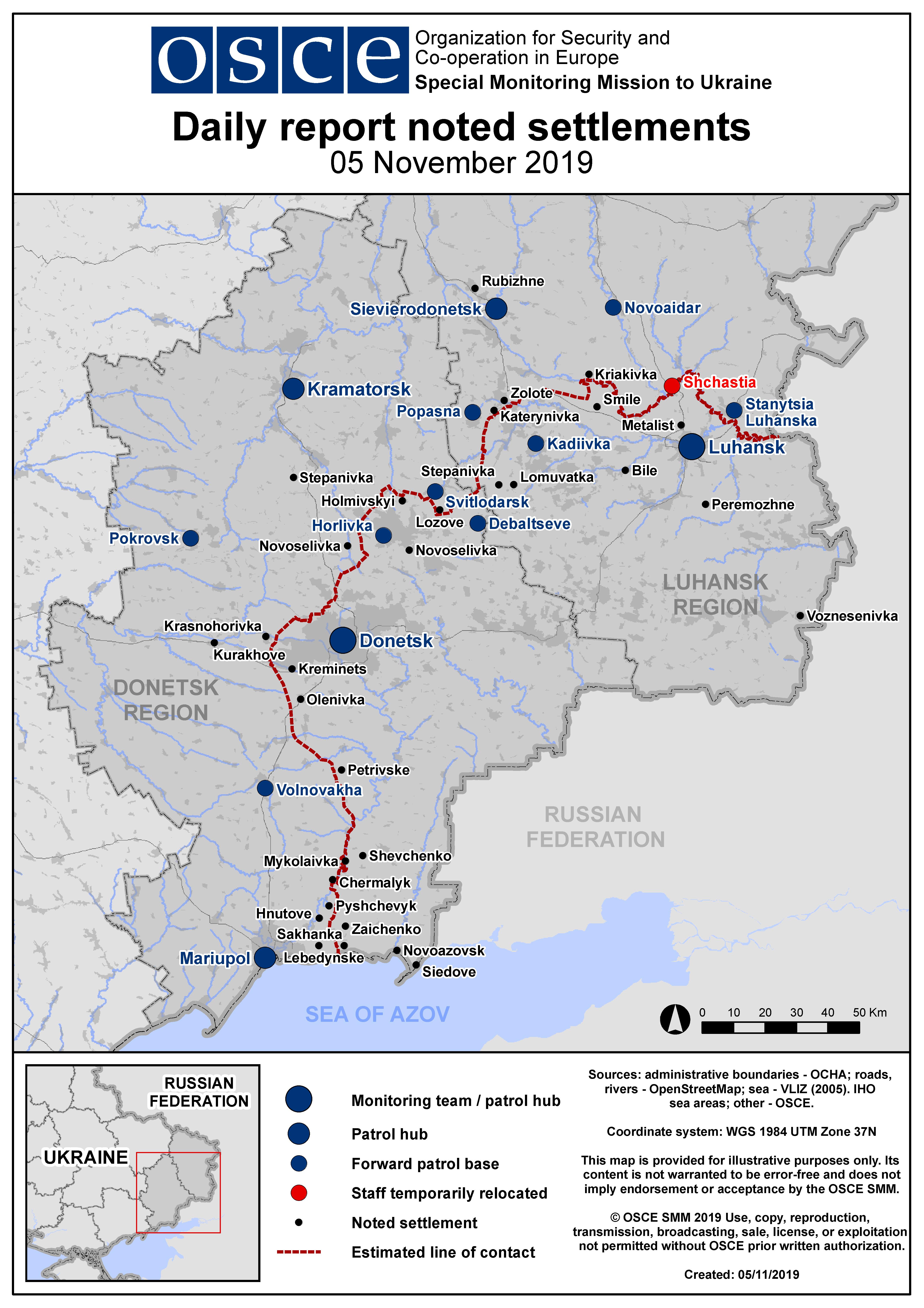 Based on information from the Monitoring Teams as of 19:30 4 November 2019. All times are in Eastern European Time.