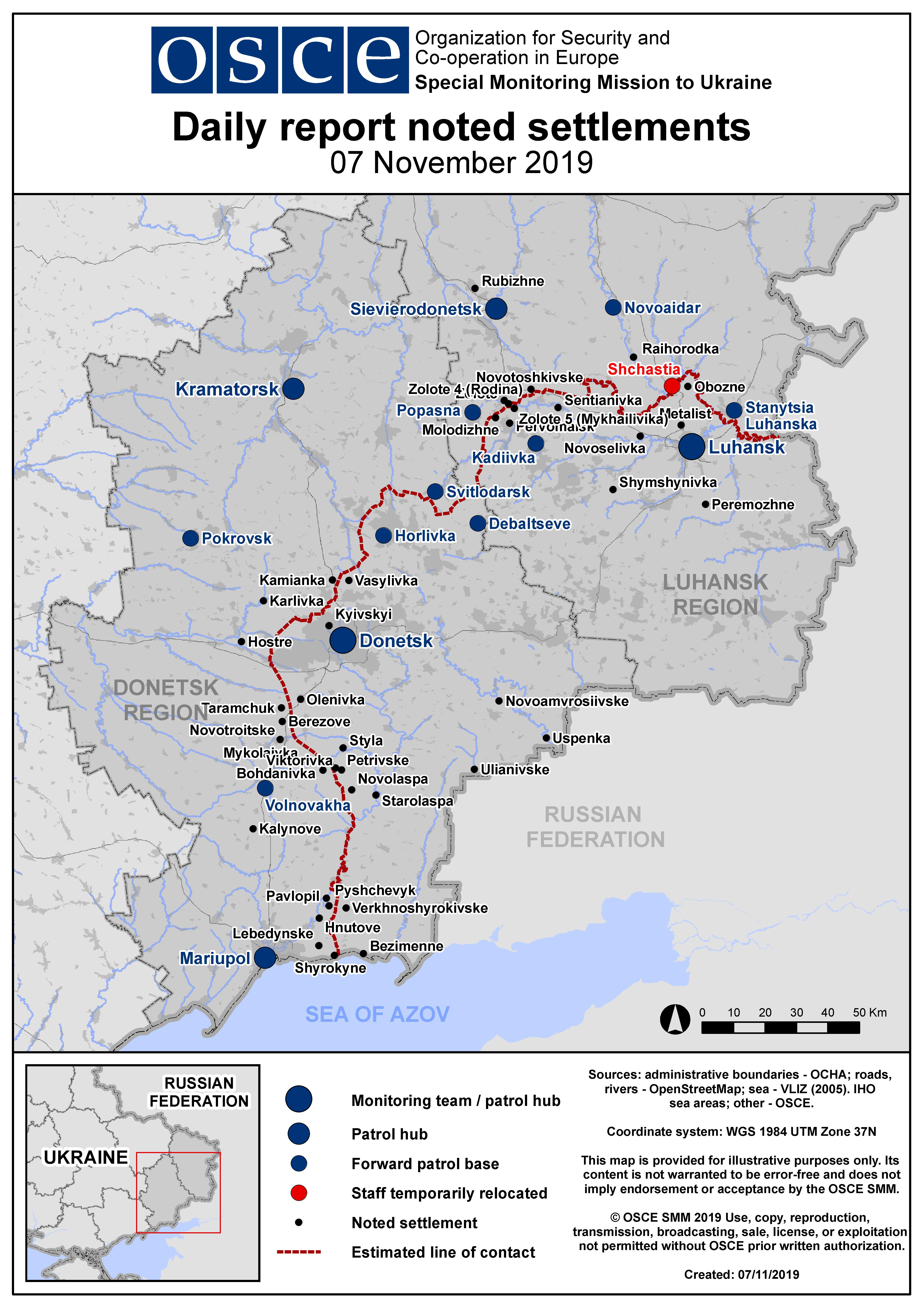 Based on information from the Monitoring Teams as of 19:30 6 November 2019. All times are in Eastern European Time.