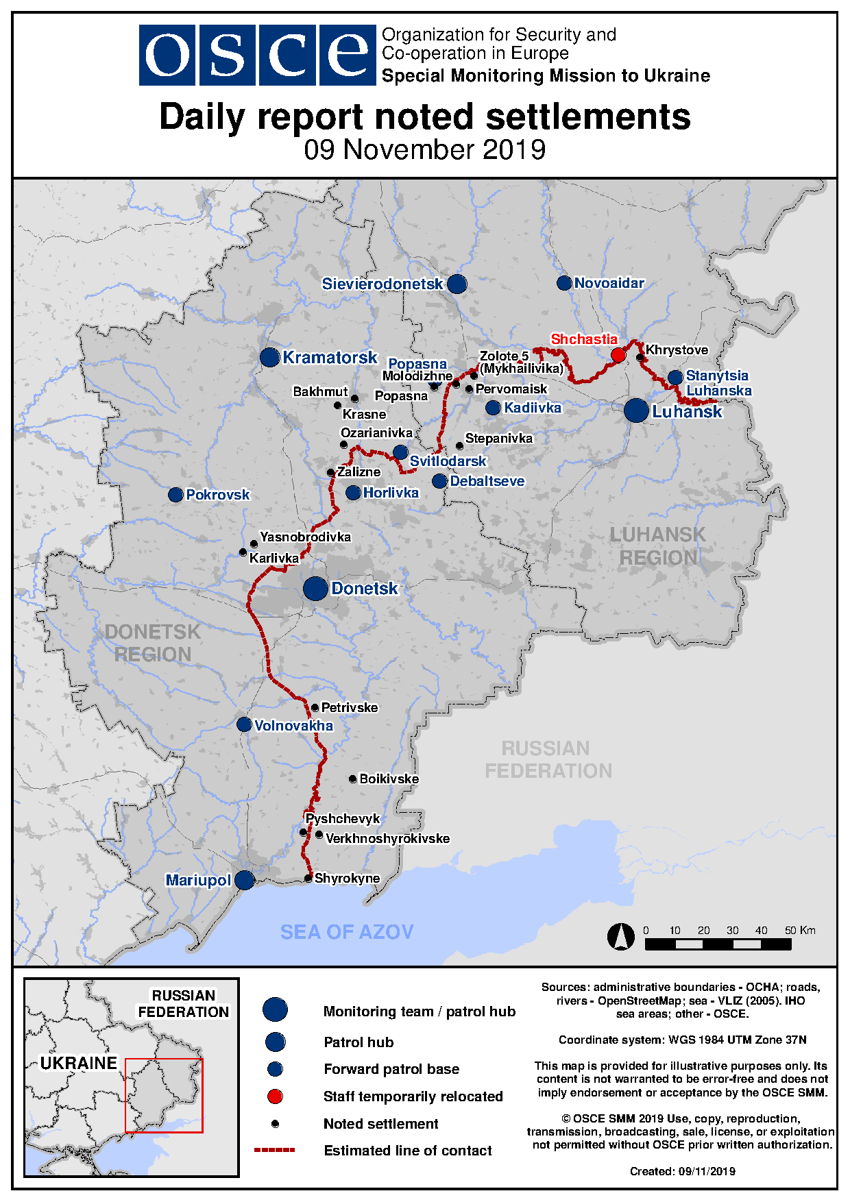 Based on information from the Monitoring Teams as of 19:30 8 November 2019. All times are in Eastern European Time.