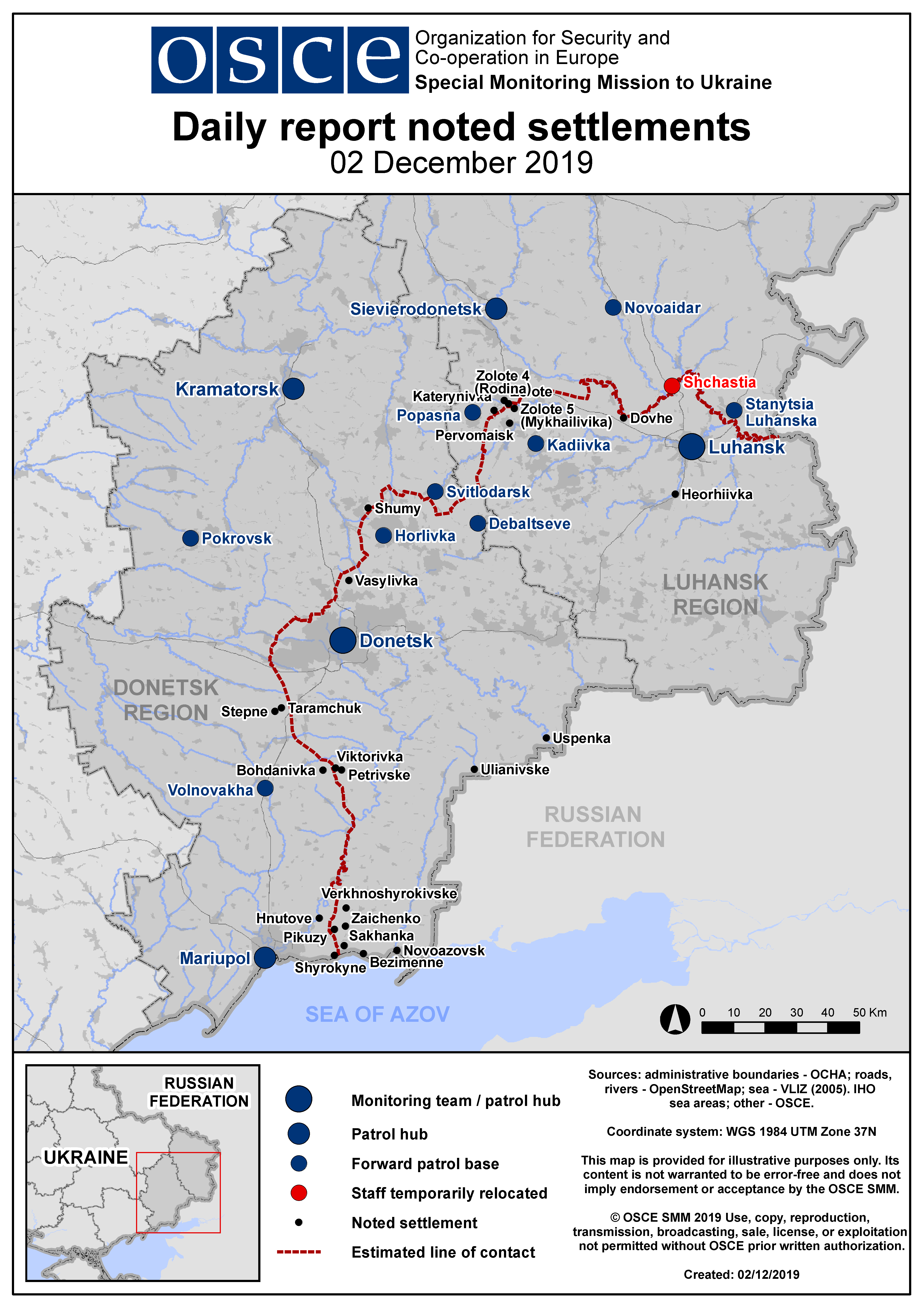 Based on information from the Monitoring Teams as of 19:30 1 December 2019. All times are in Eastern European Time.