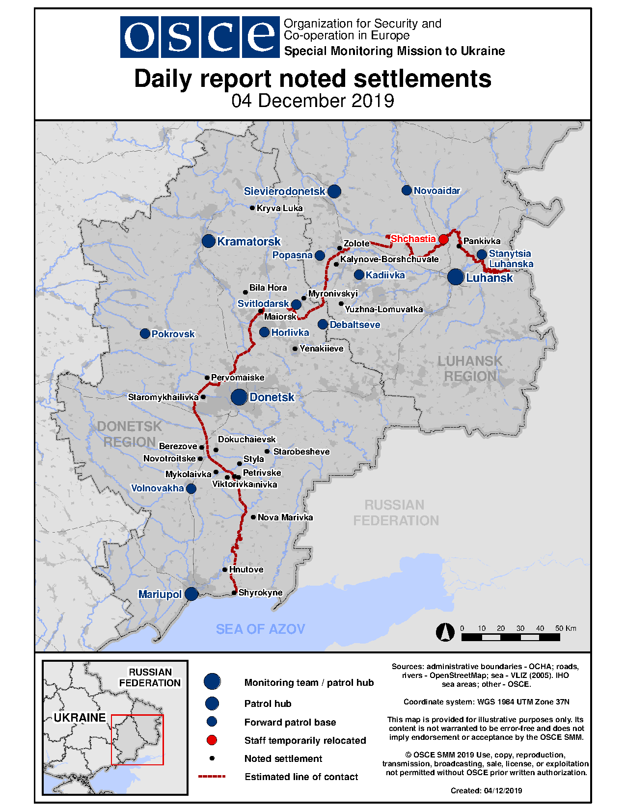 Based on information from the Monitoring Teams as of 19:30 3 December 2019. All times are in Eastern European Time.
