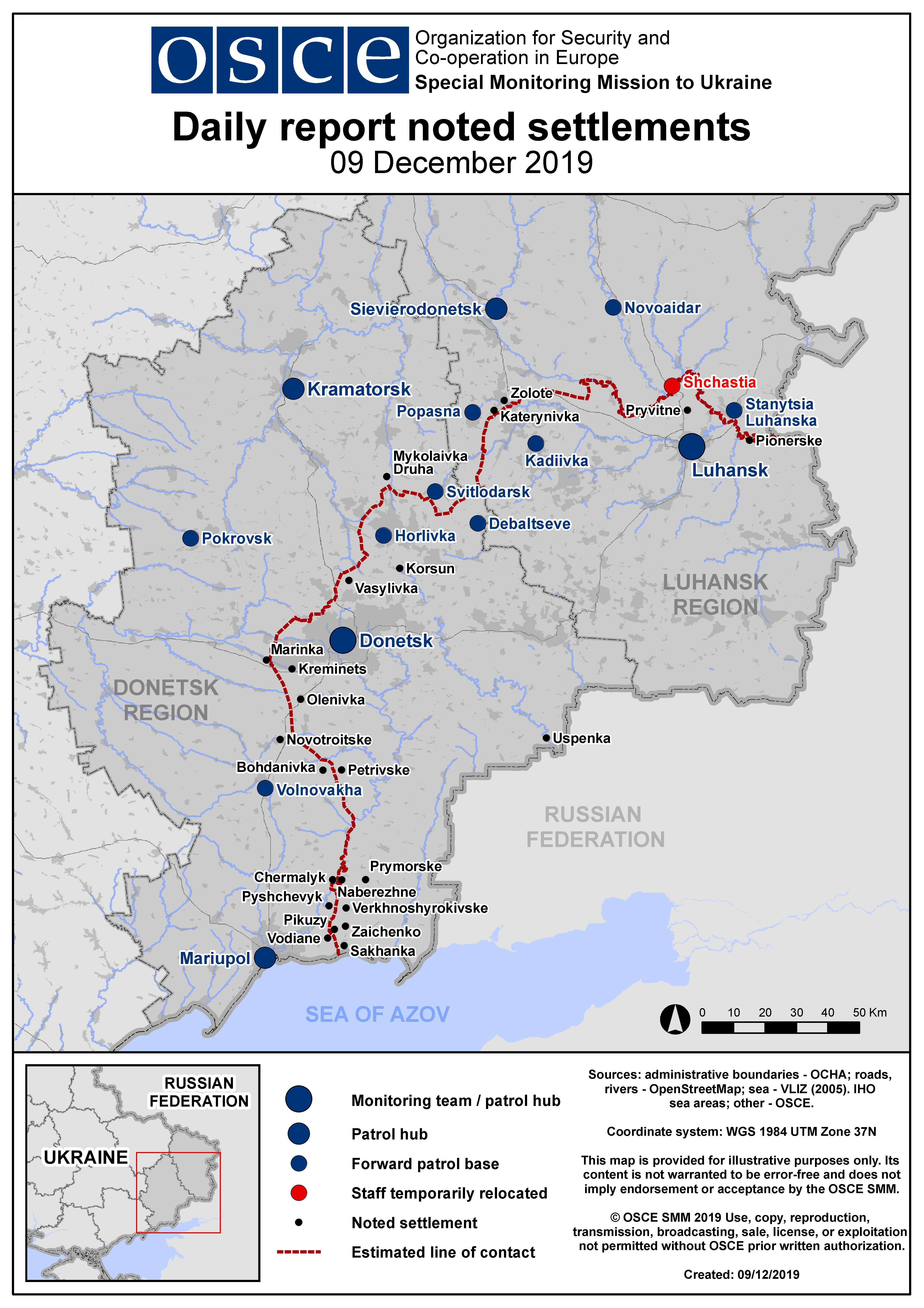 Based on information from the Monitoring Teams as of 19:30 8 December 2019. All times are in Eastern European Time.