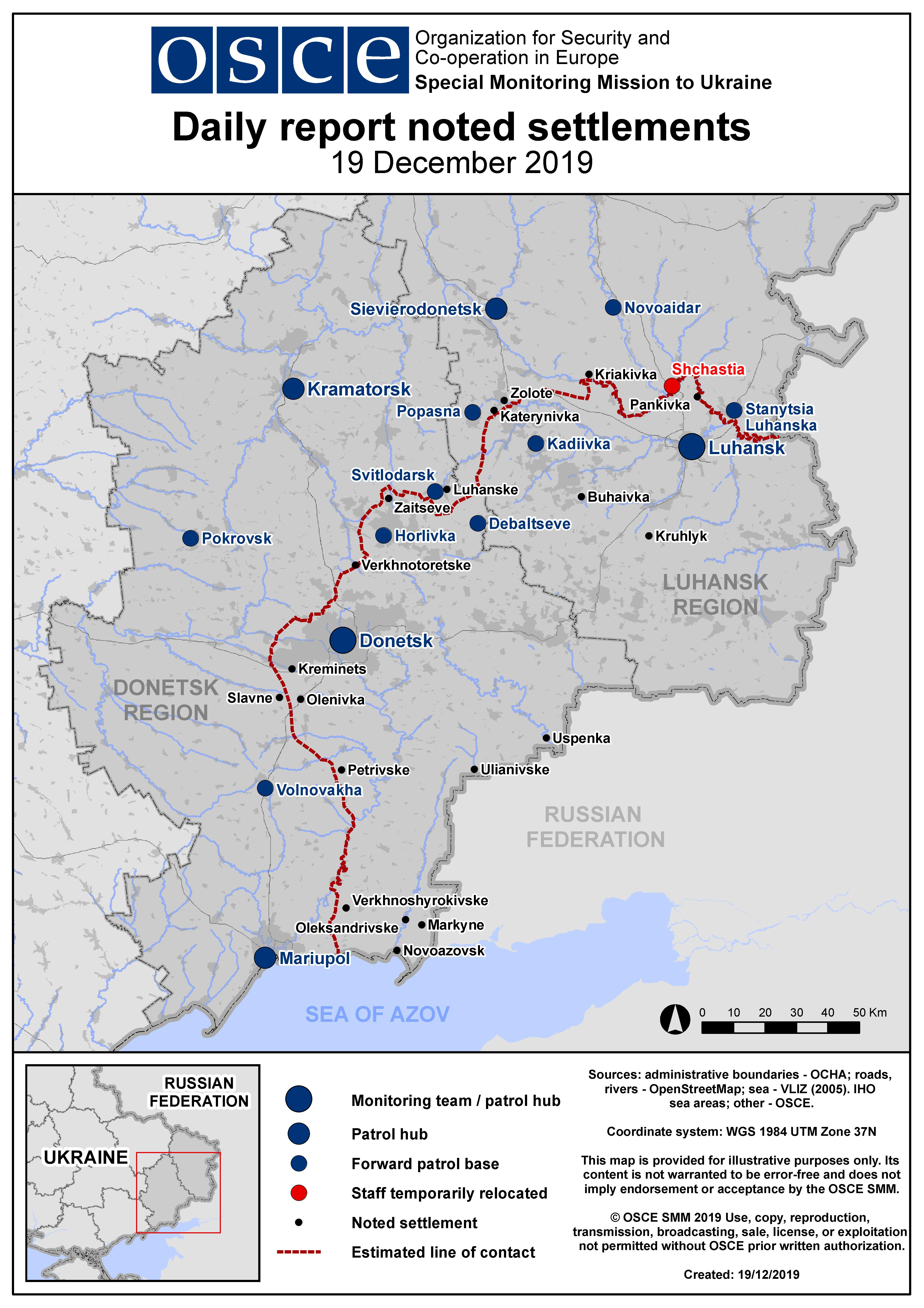Based on information from the Monitoring Teams as of 19:30 18 December 2019. All times are in Eastern European Time.