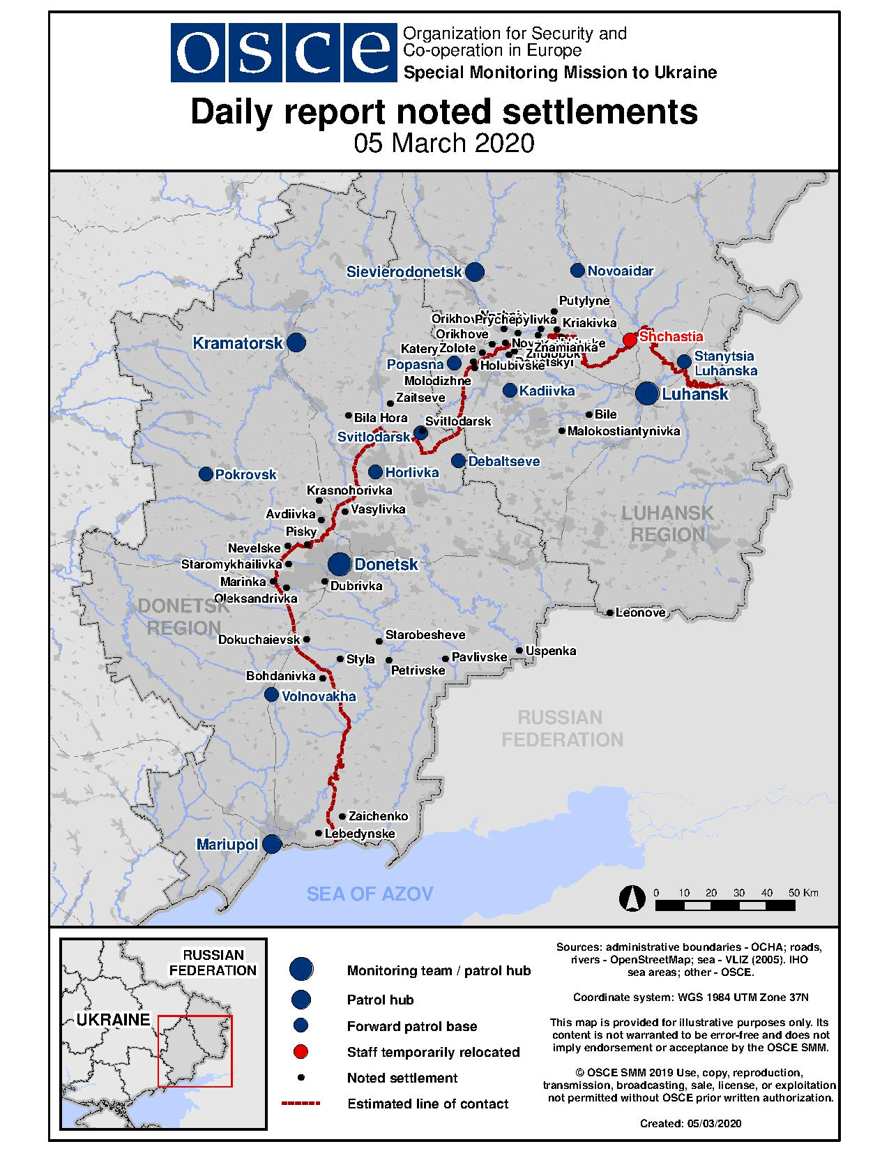 Based on information from the Monitoring Teams as of 19:30 4 March 2020. All times are in Eastern European Time.