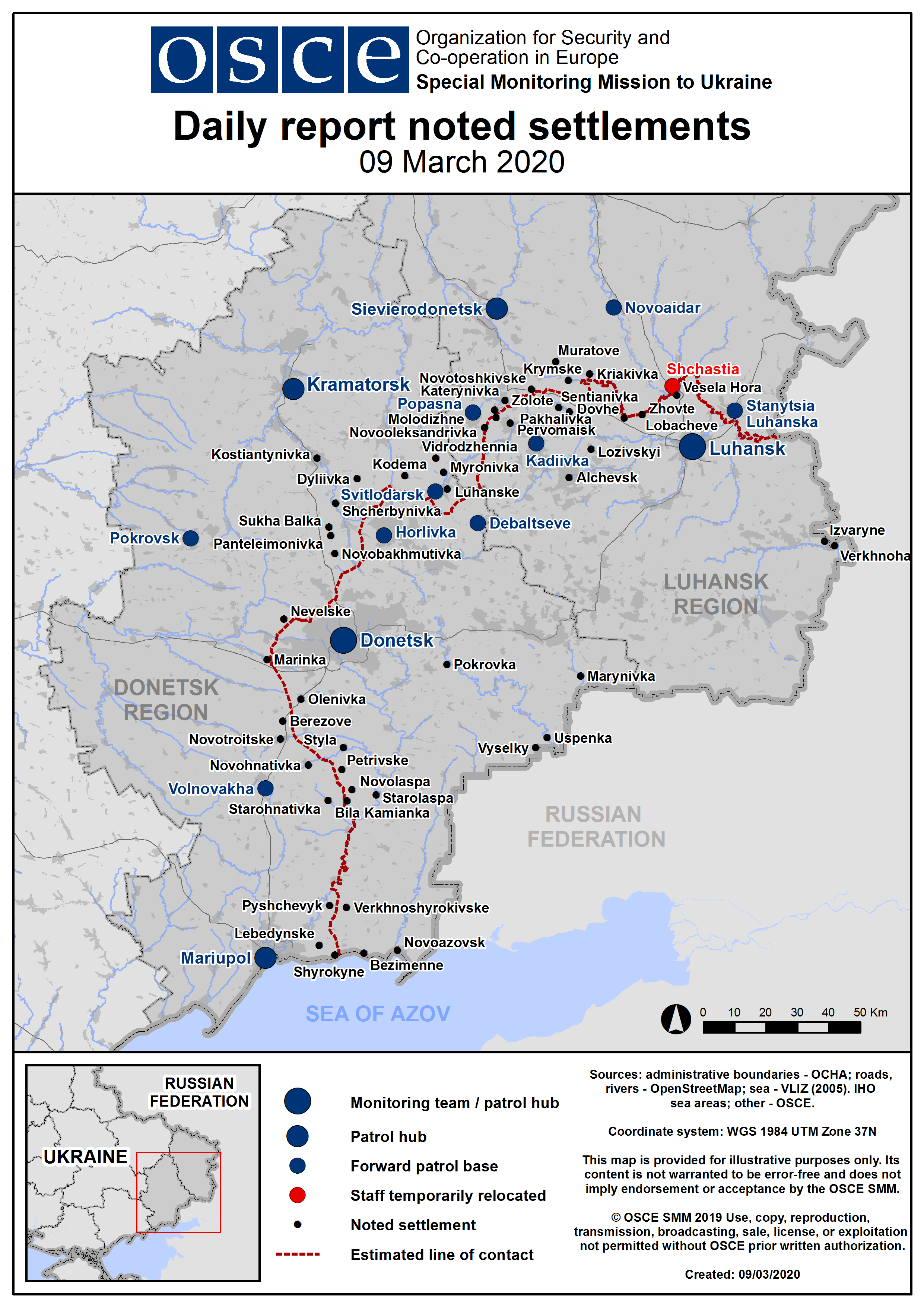 Based on information from the Monitoring Teams as of 19:30 8 March 2020. All times are in Eastern European Time.
