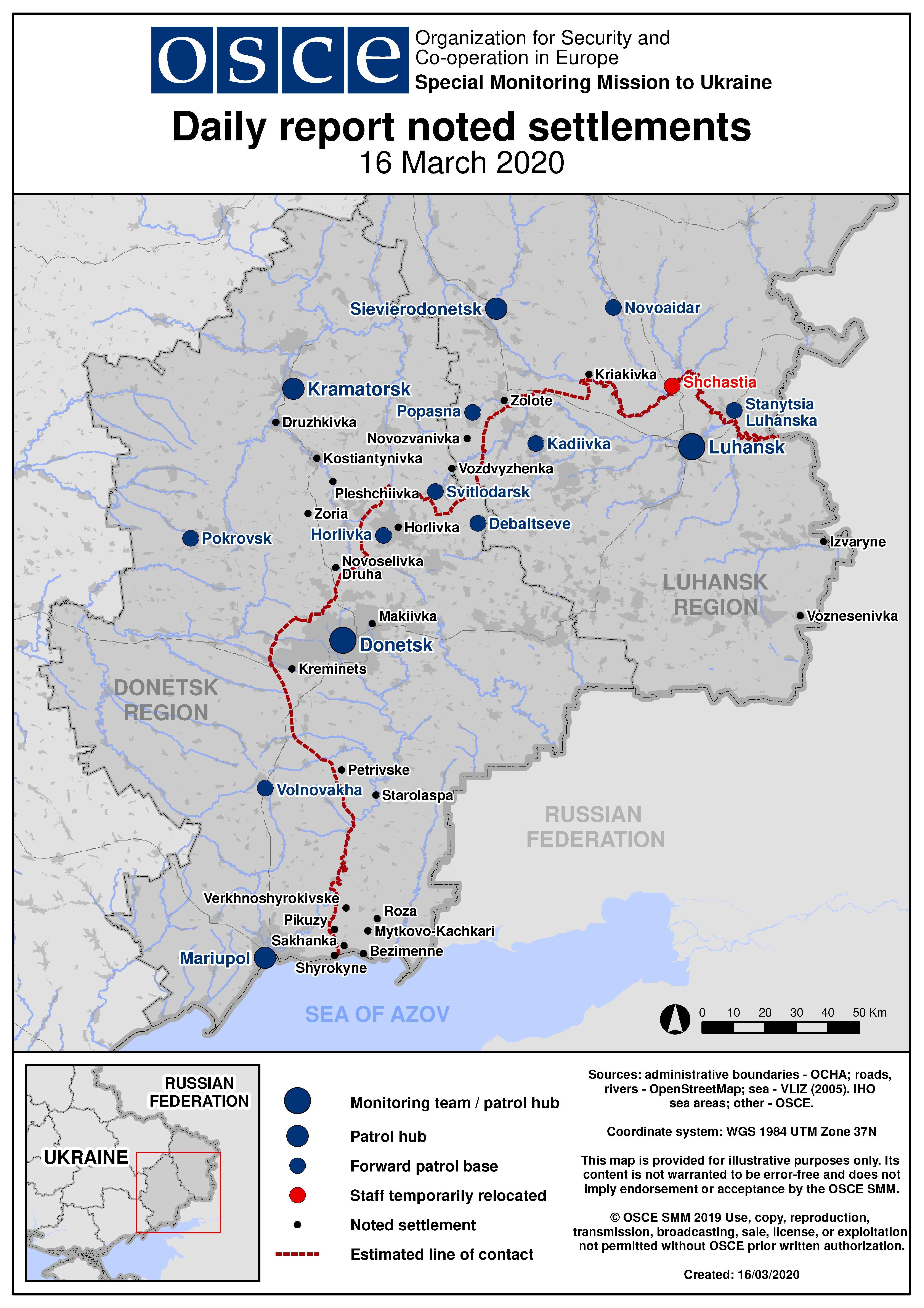 Based on information from the Monitoring Teams as of 19:30 15 March 2020. All times are in Eastern European Time.