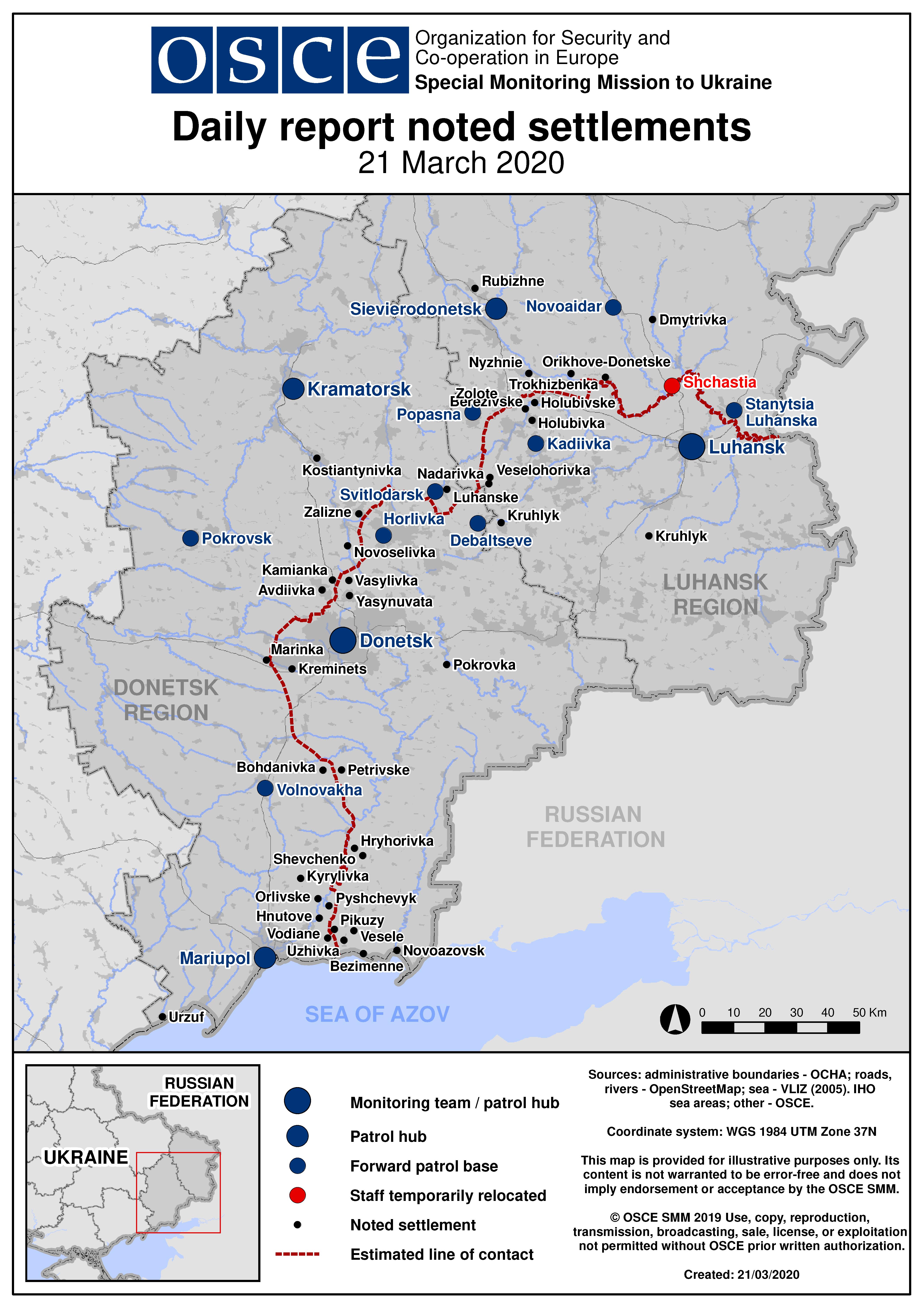 Based on information from the Monitoring Teams as of 19:30 20 March 2020. All times are in Eastern European Time.