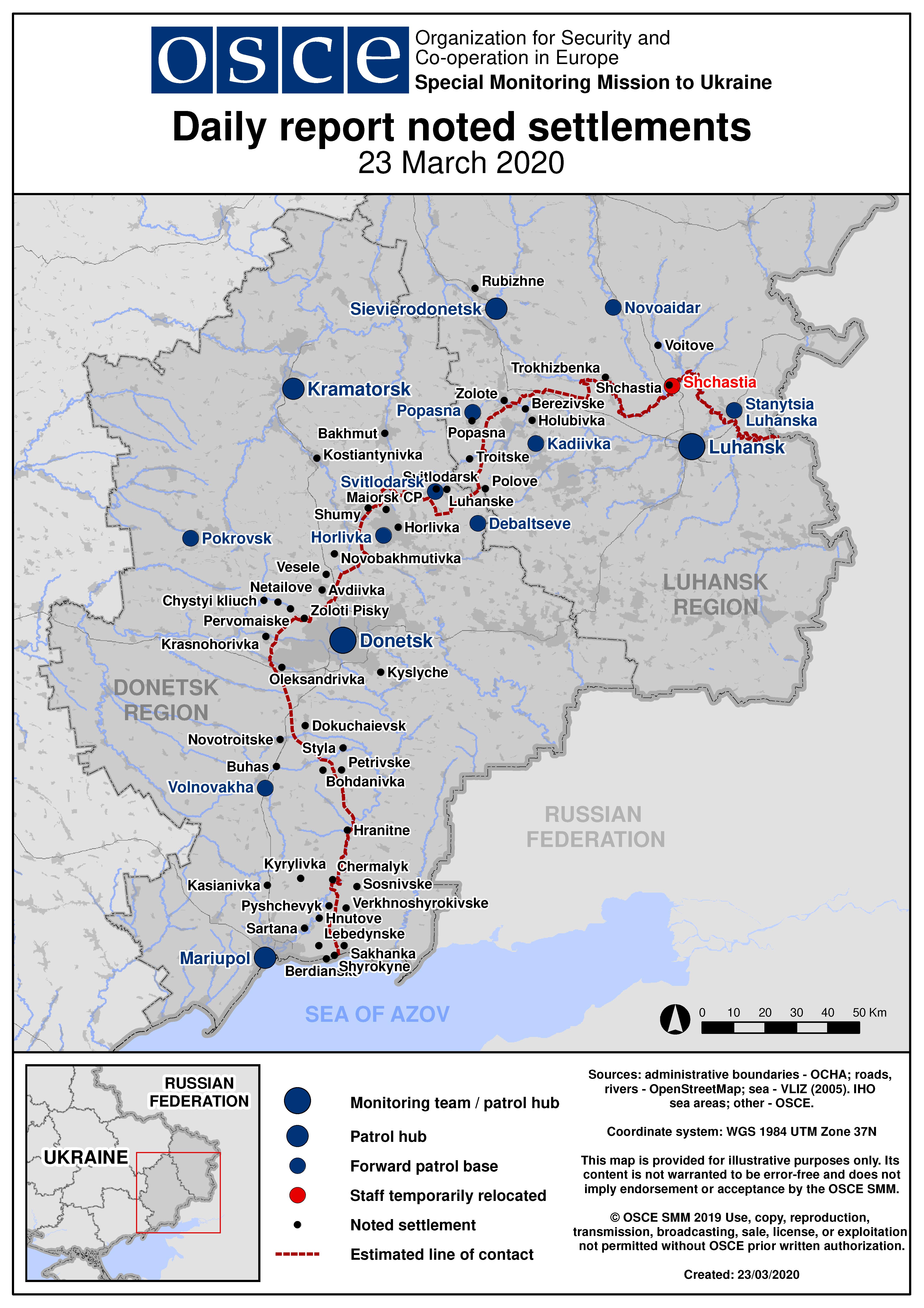 Based on information from the Monitoring Teams as of 19:30 22 March 2020. All times are in Eastern European Time.