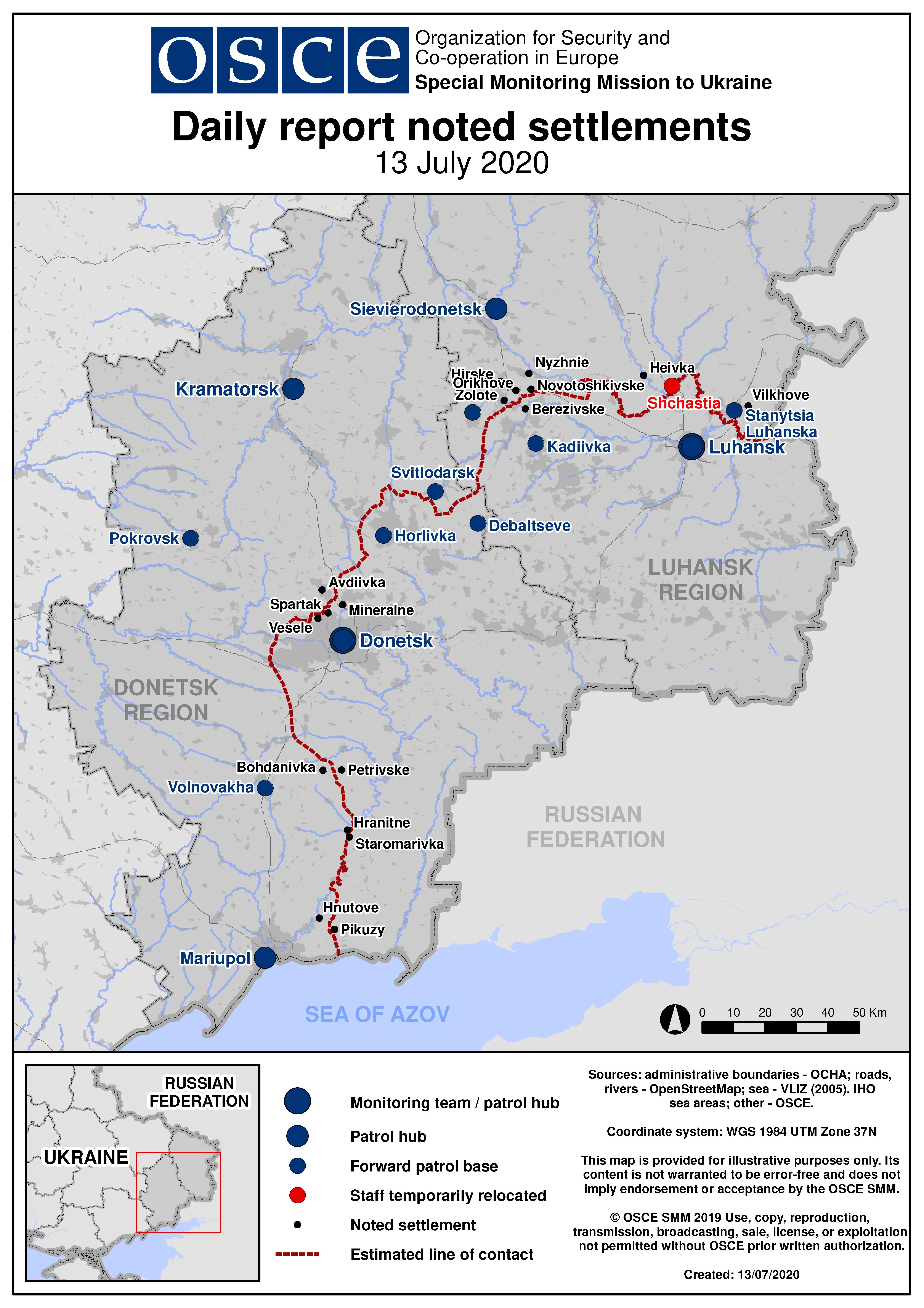 Based on information from the Monitoring Teams as of 19:30 12 July 2020. All times are in Eastern European Summer Time.