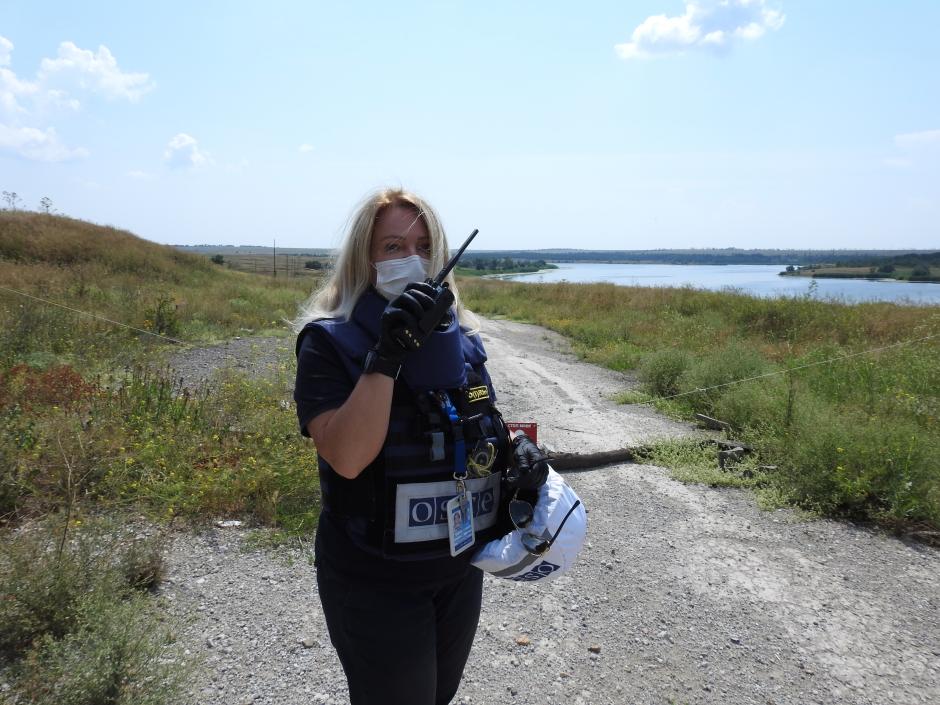Monitoring officer on patrol on the outskirts of Chermalyk, Donetsk region