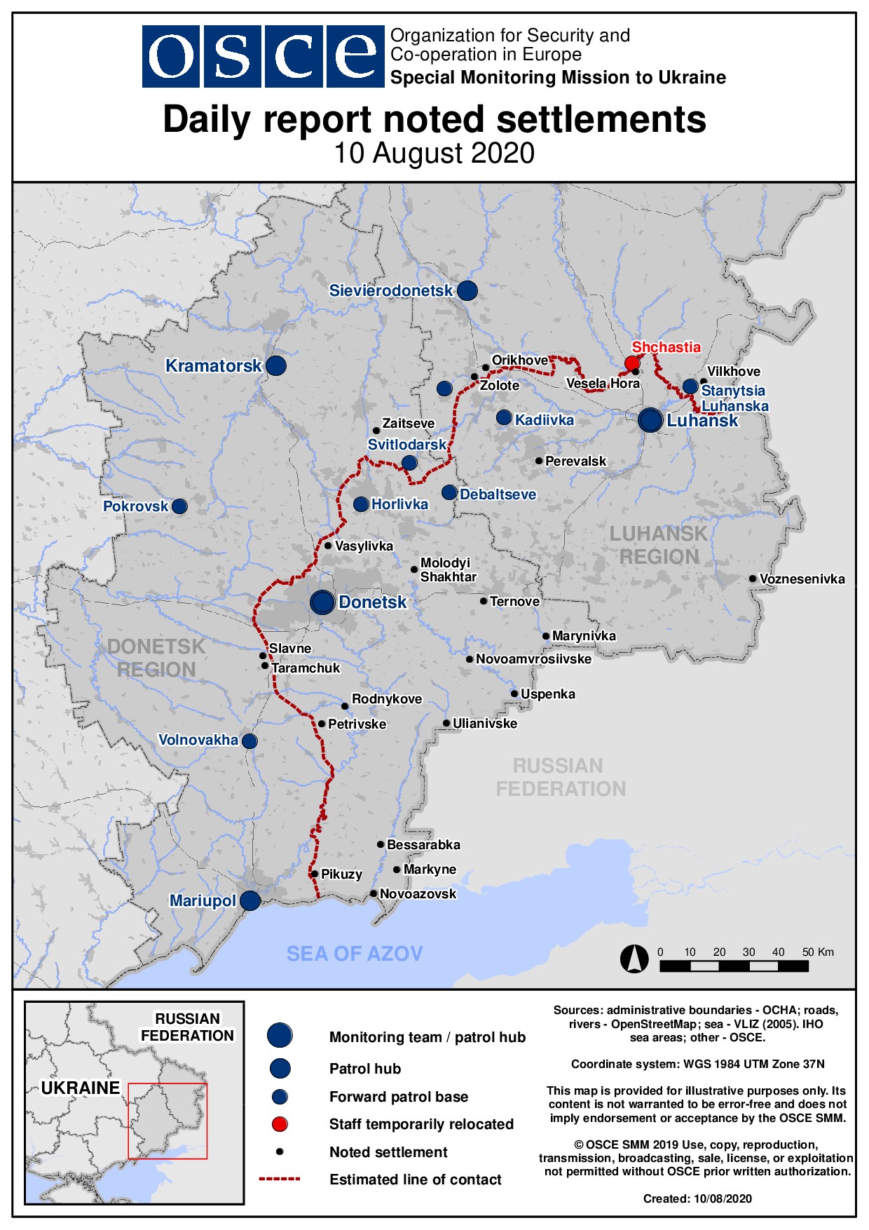 Based on information from the Monitoring Teams as of 19:30 9 August 2020. All times are in Eastern European Summer Time.