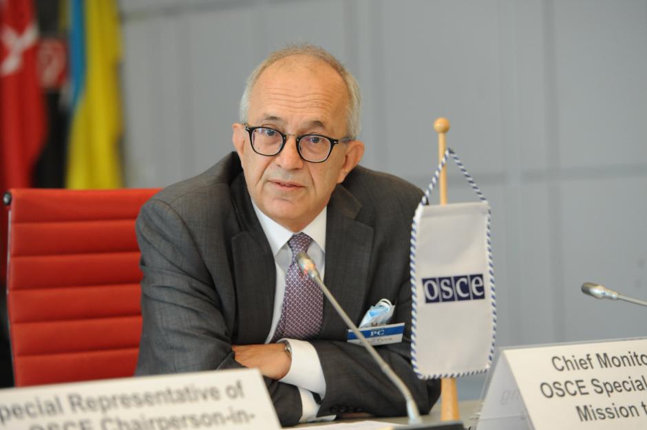 Yaşar Halit Çevik, Chief Monitor of the OSCE Special Monitoring Mission to Ukraine, addresses the OSCE Permanent Council, Vienna, 8 October 2020. (OSCE/Micky Kroell)
