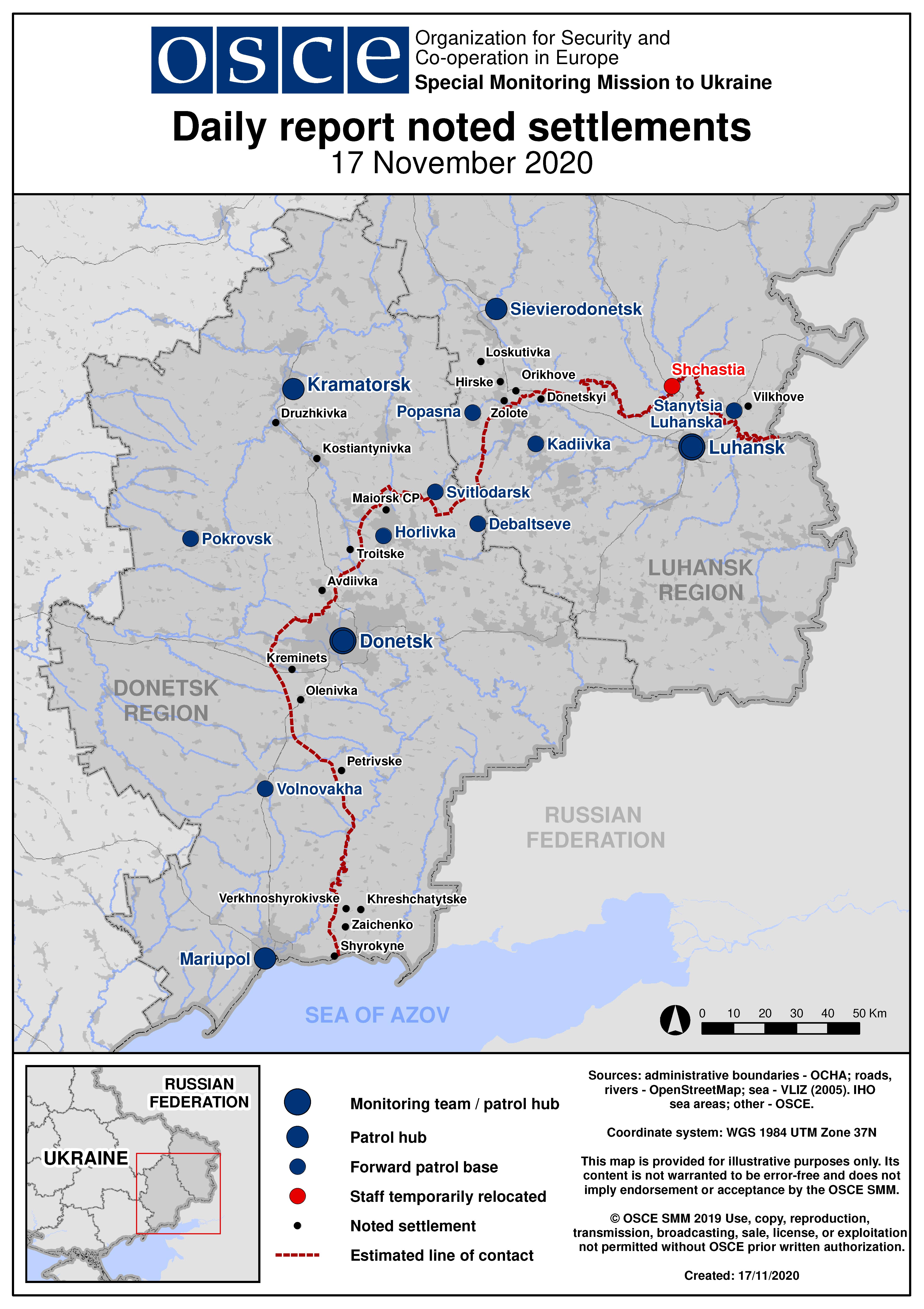 Based on information from the Monitoring Teams as of 19:30 16 November 2020. All times are in Eastern European Time.