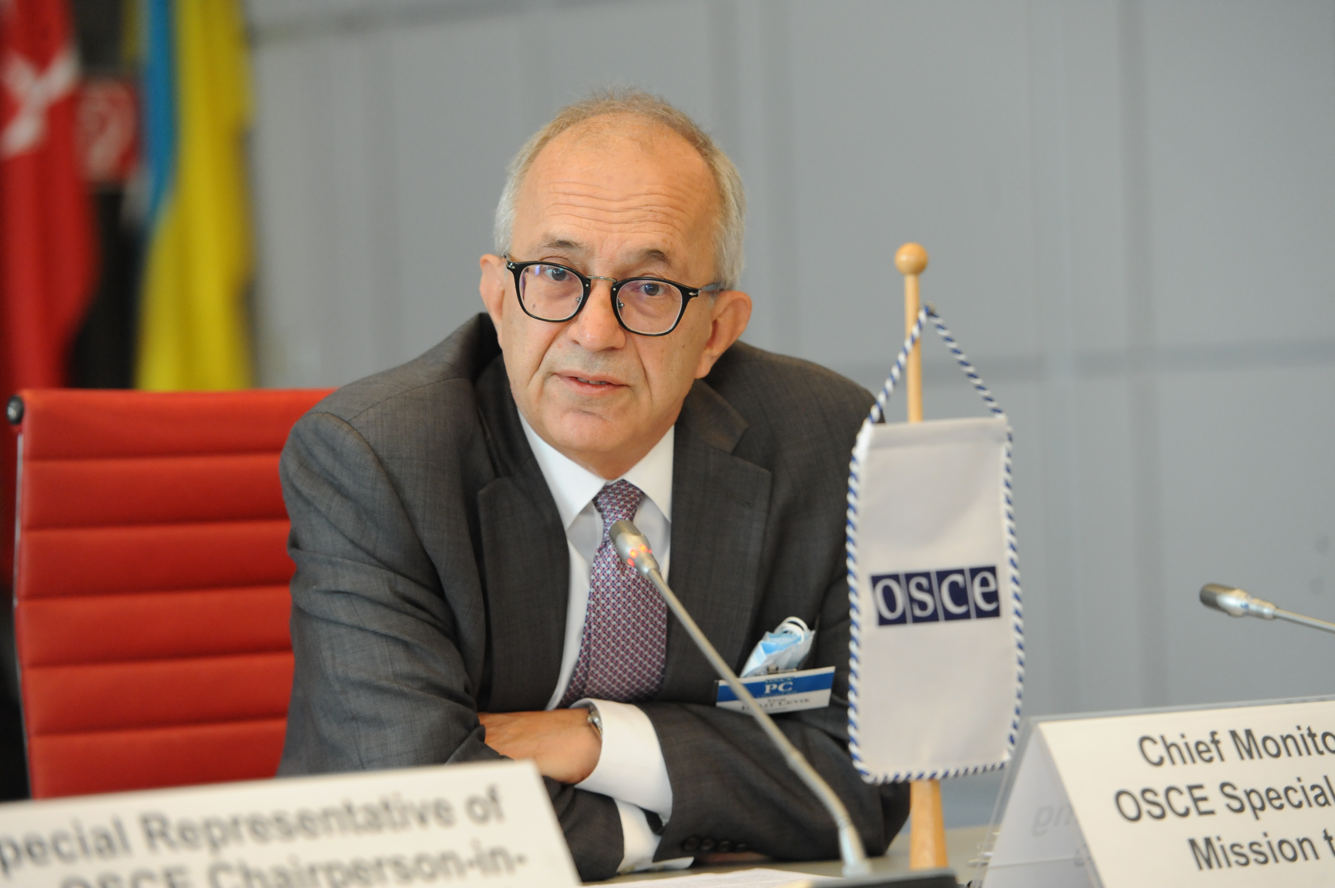 Yaşar Halit Çevik, Chief Monitor of the OSCE Special Monitoring Mission to Ukraine, addresses the OSCE Permanent Council, Vienna. (OSCE/Micky Kroell)