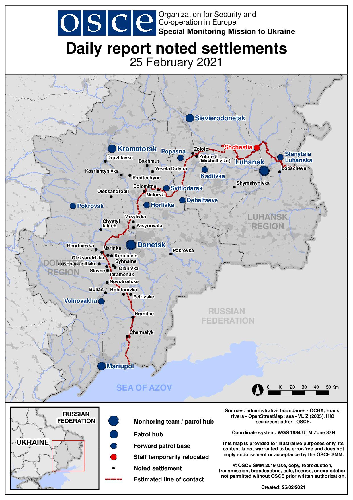 Based on information from the Monitoring Teams as of 19:30 24 February 2021. All times are in Eastern European Time.