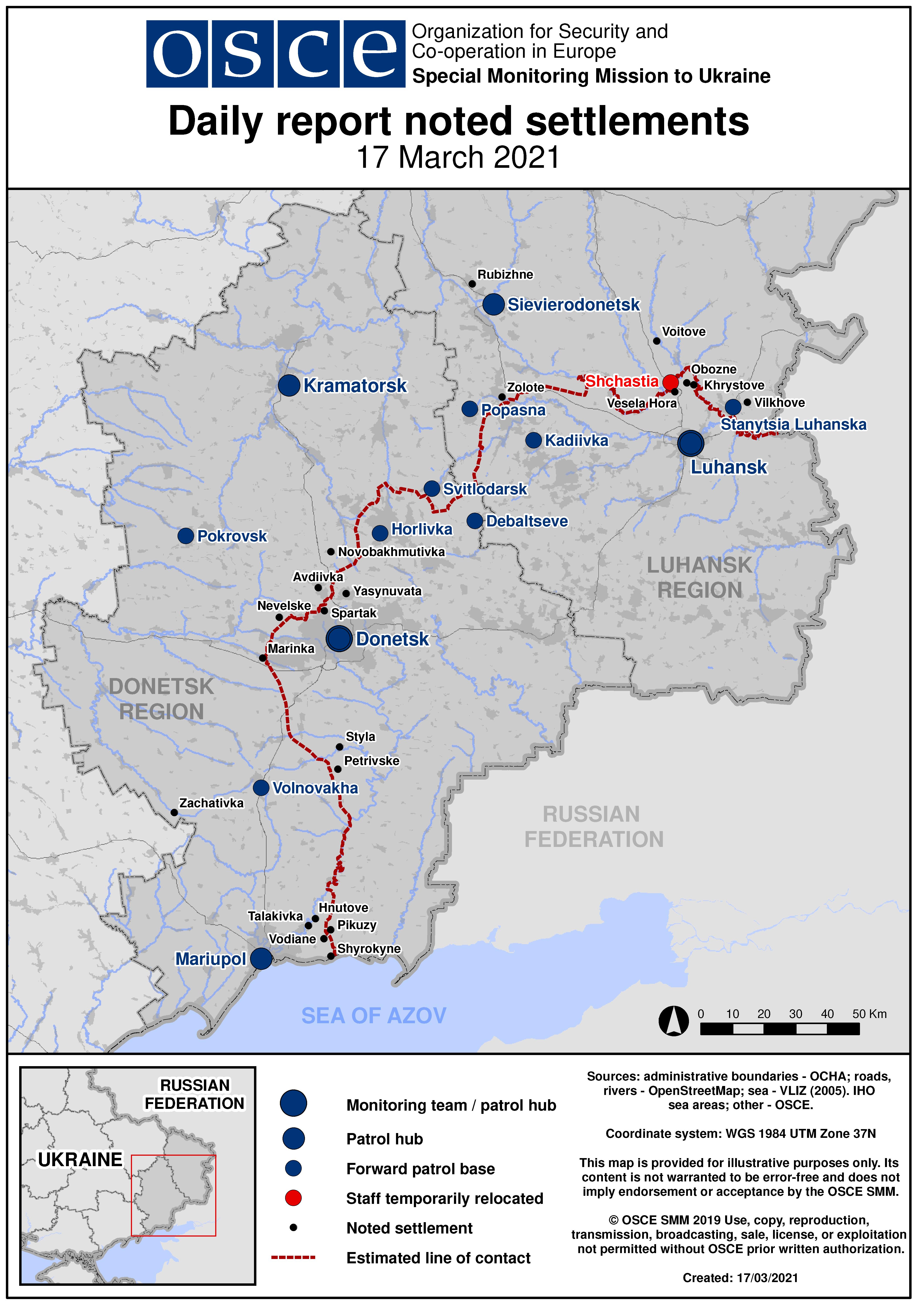 Based on information from the Monitoring Teams as of 19:30 16 March 2021. All times are in Eastern European Time.