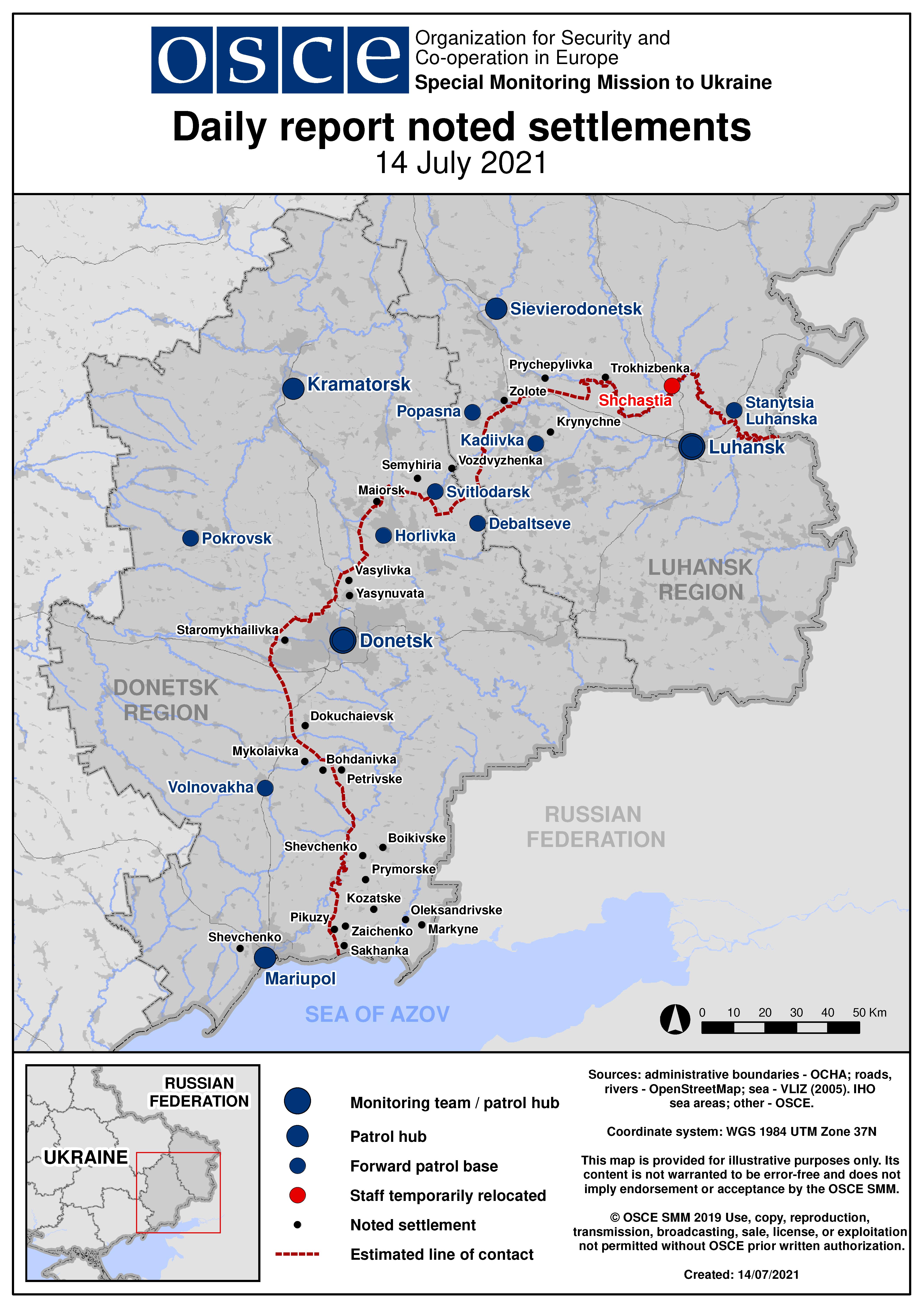 Based on information from the Monitoring Teams as of 19:30 13 July 2021. All times are in Eastern European Summer Time.