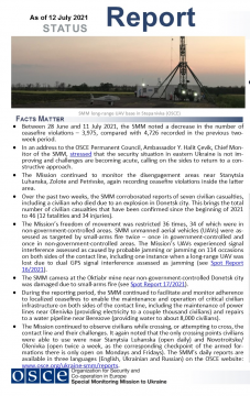 This report presents a general overview of the Special Monitoring Mission to Ukraine (SMM), its main activities and latest news as of 12 July 2021.