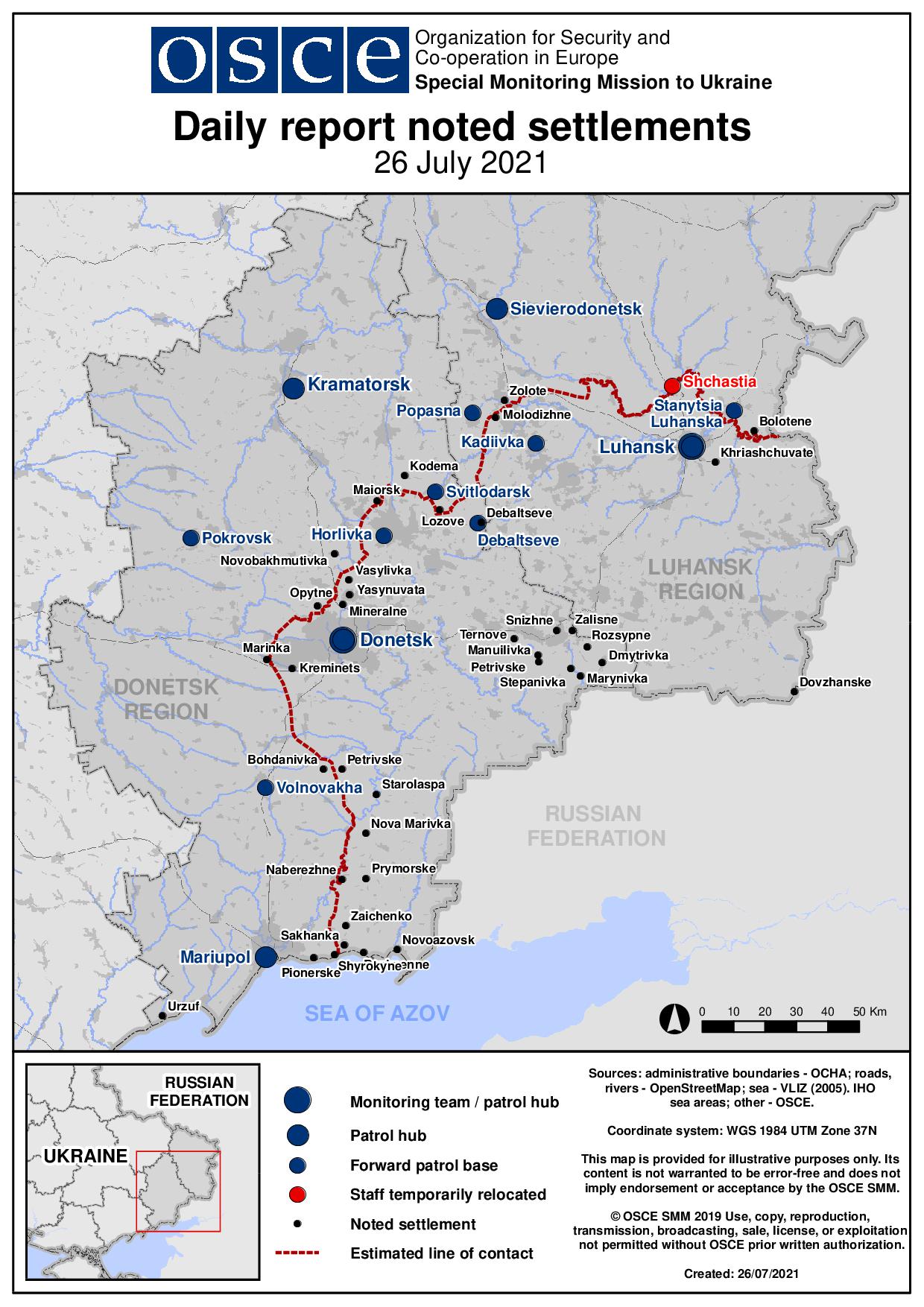 Based on information from the Monitoring Teams as of 19:30 25 July 2021. All times are in Eastern European Summer Time.