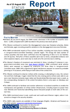 This report presents a general overview of the Special Monitoring Mission to Ukraine (SMM), its main activities and latest news as of 9 August 2021.
