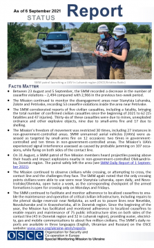This report presents a general overview of the Special Monitoring Mission to Ukraine (SMM), its main activities and latest news as of 6 September 2021.