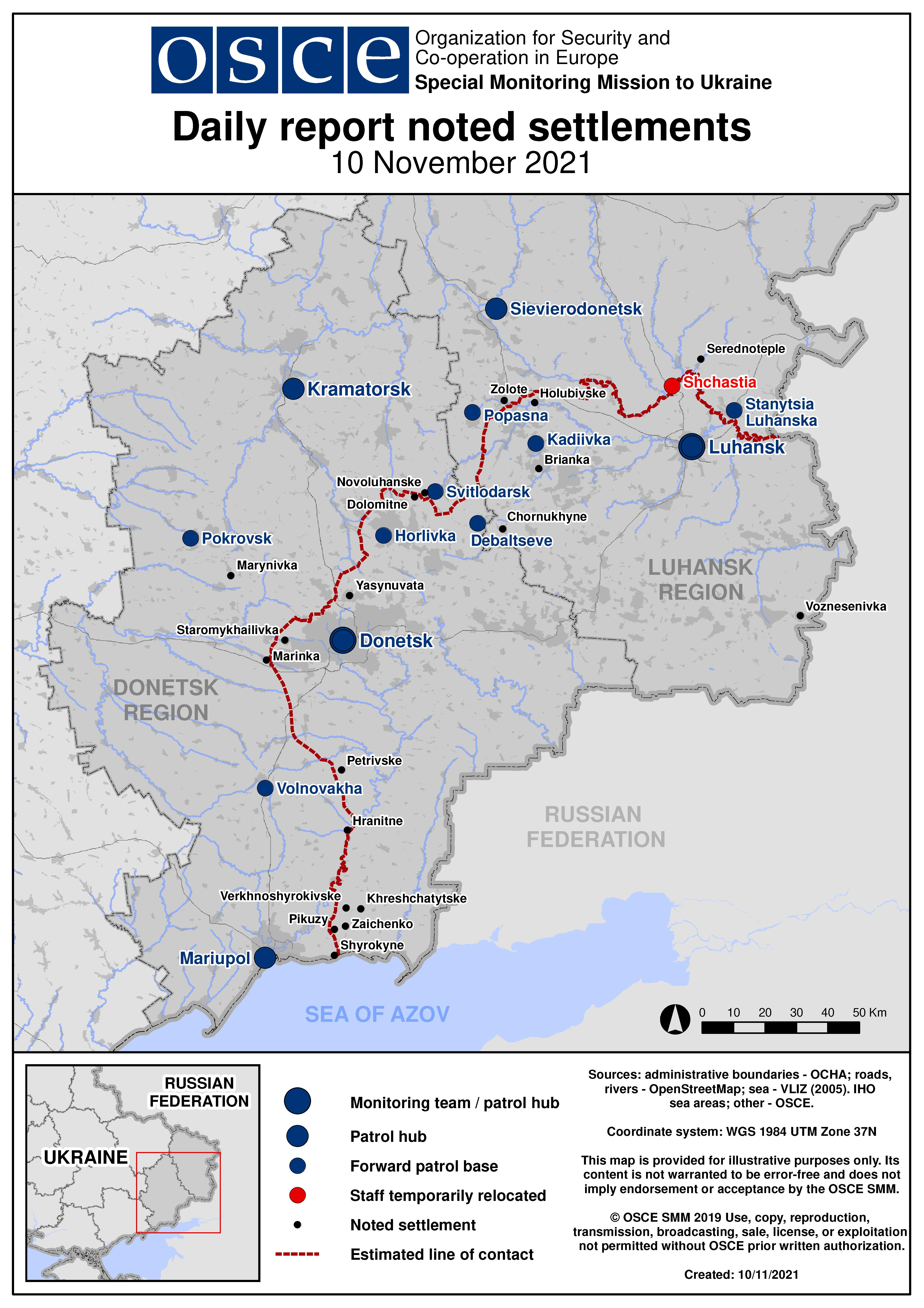 Based on information from the Monitoring Teams as of 19:30 9 November 2021. All times are in Eastern European Time.