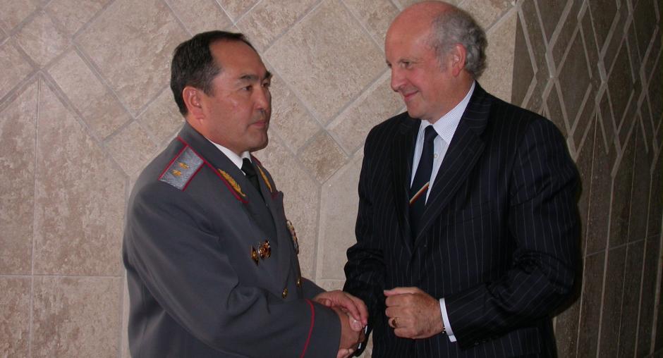 (OSCE)OSCE Senior Police Adviser, Richard Monk (right), and Kyrgyz Police Academy Rector General Beksultan Ishimov signed a key agreement on a comprehensive OSCE police assistance programme on 7 August 2003. (OSCE) Photo details