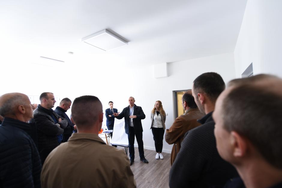 Negociatori ekspert Ioan Batinas nga Rumania, u cakton role zyrtarëve korrektues gjatë një situatë të simuluar të pengmarrjes në burg. Vushtrri, 27 prill 2023.