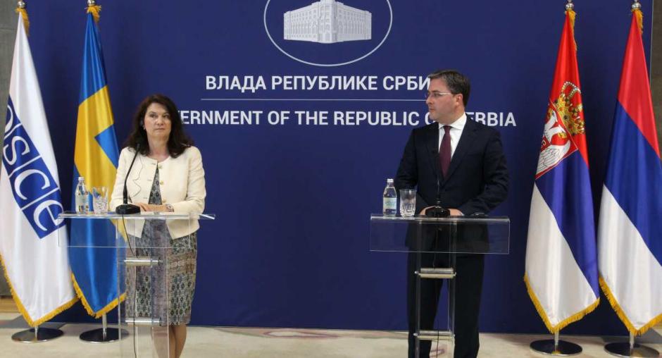 BEOGRAD, 26. maj 2021. godine — Predsedavajuća OEBS-u, ministarka spoljnih poslova Švedske An Linde završila je ju juče posetu Srbiji. Predsedavajuća Linde naglasila je snažno partnerstvo OEBS-a sa Srbijom u pogledu reformskih prioriteta Srbije.