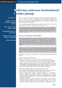Vrlo je prisutna svest o tome da reformom sektora bezbednosti (RSB) treba izai u susret razl iit im bezbednosnim potrebama muškaraca, žena, deaka i devojica. Integrisanje rodnih pitanja je takoe klju za efikasnost i odgovornost sektora bezbednosti, kao i za lokalno vlasništvo nad procesom reformi i legitimitet RSB. U ovim praktinim napomenama daje se kratak uvod u koristi od integrisanja rodnih pitanja u RSB, kao i praktine informacije u vezi sa tim.