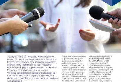 The OSCE works to support implementation of United Nations Security Council Resolution 1325 which recognizes the pivotal role women play in conflict prevention, conflict resolution, and post-conflict reconstruction. It provides training and technical assistance to governments to help them to implement the Resolution, publishes material to promote increased women’s participation throughout the conflict cycle, and promotes the inclusion of women’s grassroots groups in conflict resolution and reconciliation processes.