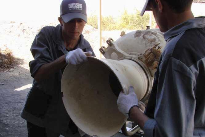 Obsolete rocket boosters before being destroyed at a military site on the outskirts of Dushanbe, Tajikistan, October 2007.