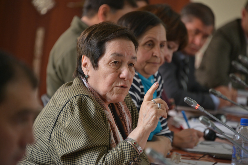 Guljahon Bobosadikova, leader of Public Association ‘Women with University Education’, speaking at the annual forum of the OSCE–Tajikistan Task Force meeting, Dushanbe, 2 April 2014.
