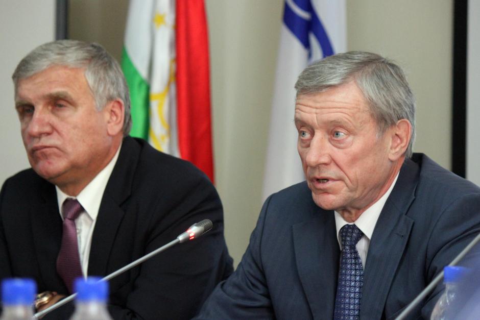 CSTO Secretary General Nikolay Bordyuzha (r) addresses participants of the 12th Border Management Staff College, 1 October 2014.